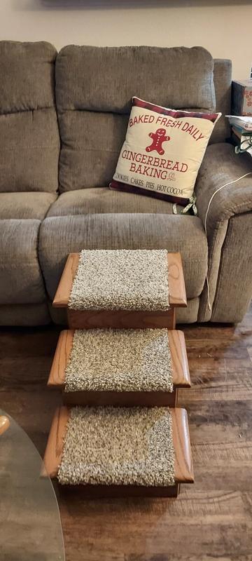 I bought the same product a few years ago so thst my smallest dog could easily gain access to a high bed. Then, there was no carpet on the stairs - just some rough