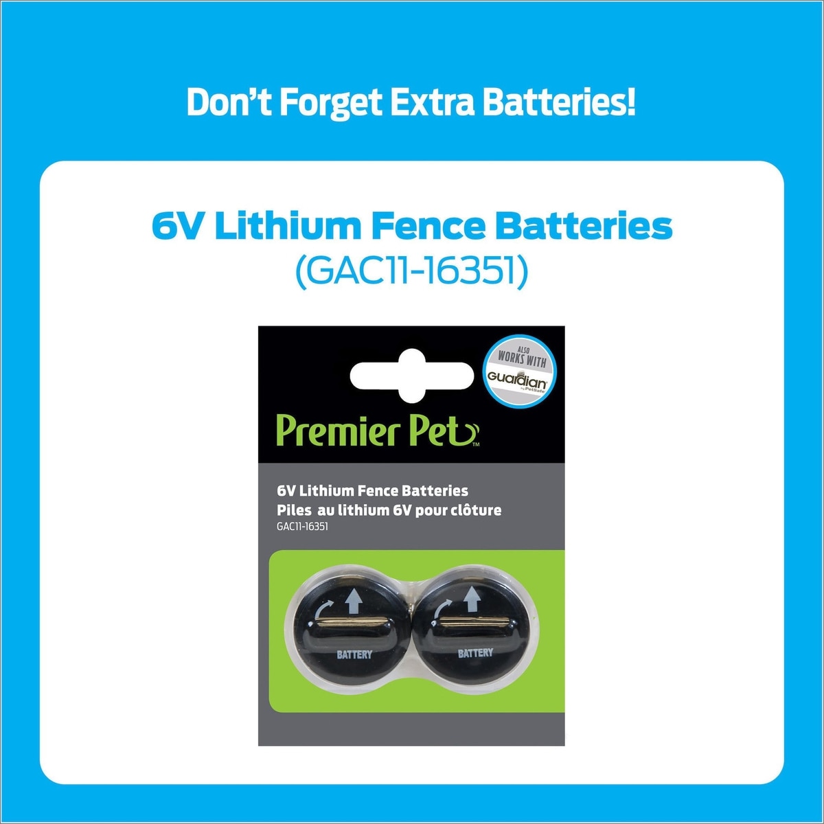 - DealPremier Pet Replacement 6V Lithium Batteries for Dog Fence Receiver Collars, 2 count$6.29 Chewy Price$8.99 List PricePromo, New Customers Only: Spend $49+, Get $20 eGift Card