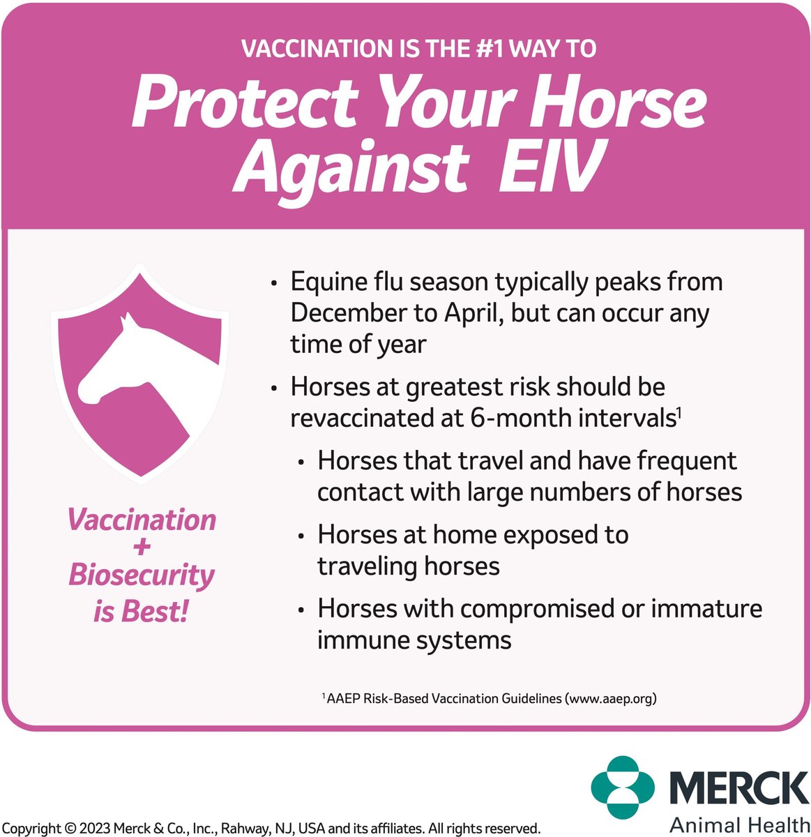 • Meets United States Equestrian Federation (USEF)/ Federation Equestre Internationale (FEI) 6-month vaccination requirements for EHV and EIV
