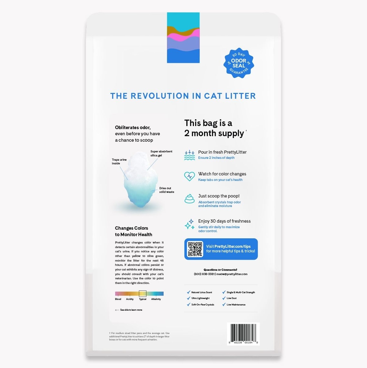 Scented with real botanicals, PrettyLitter Lotus Flower Scented Cat Litter offers a light, floral scent with advanced odor control. This lightweight litter is easy to maintain and changes color to help you keep tabs on your cat’s health.