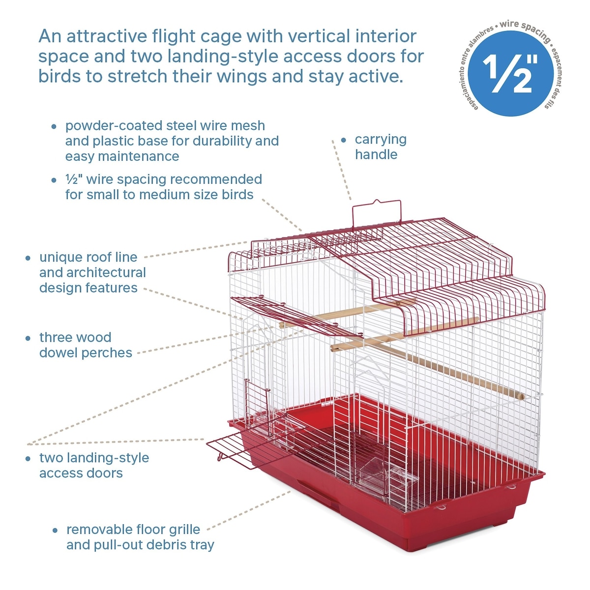 Prevue Pet Products Cockatiel Flight Bird Cage, Red/White