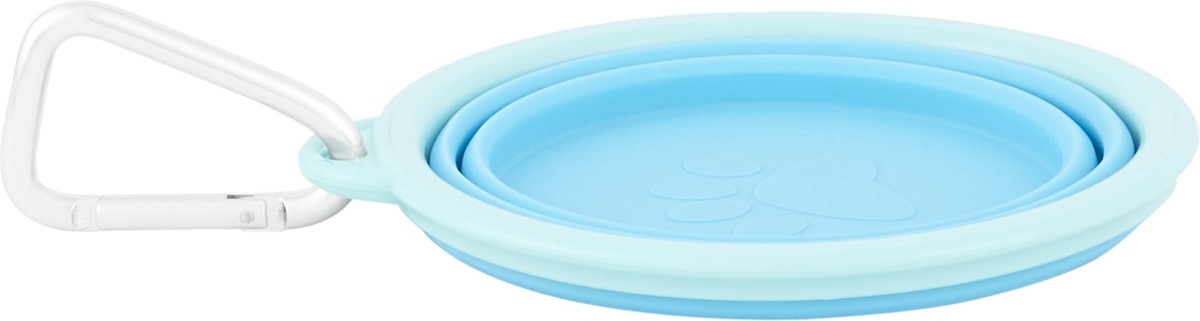 Prima Pets Collapsible Travel Bowl with Carabiner, Small, Aqua