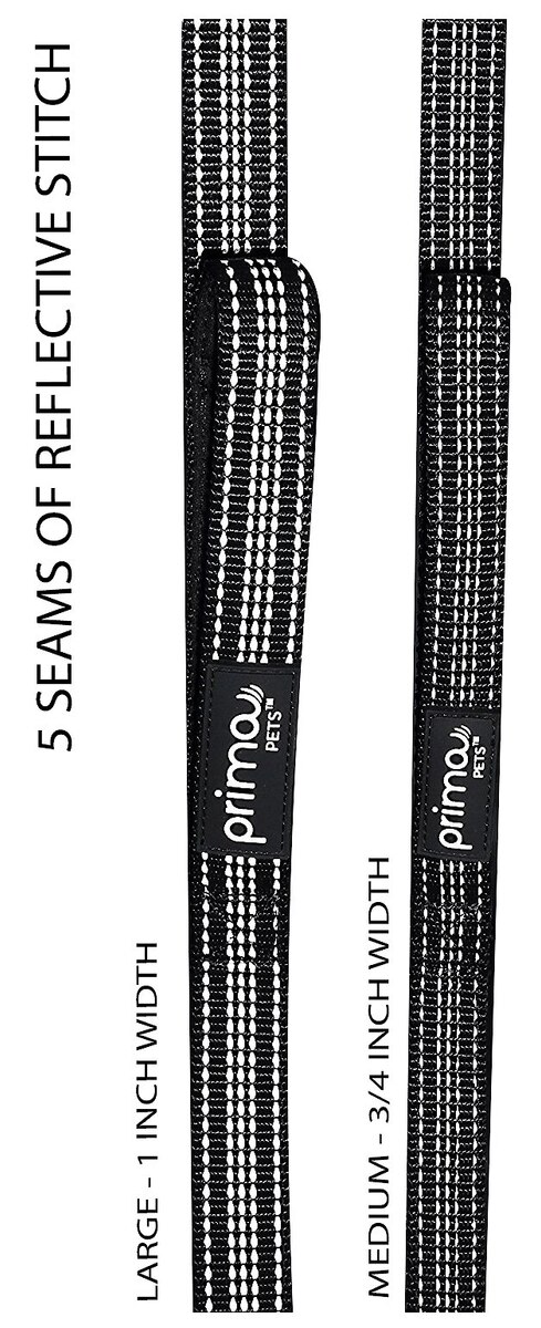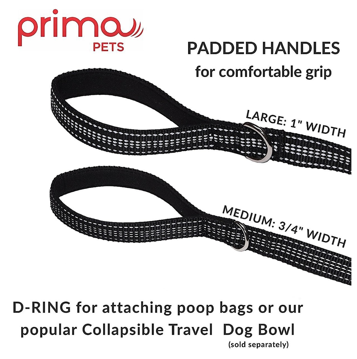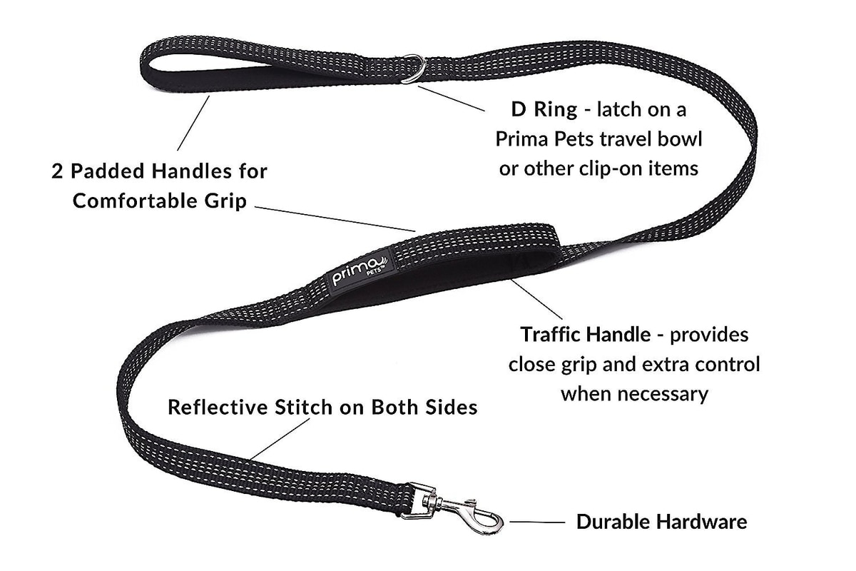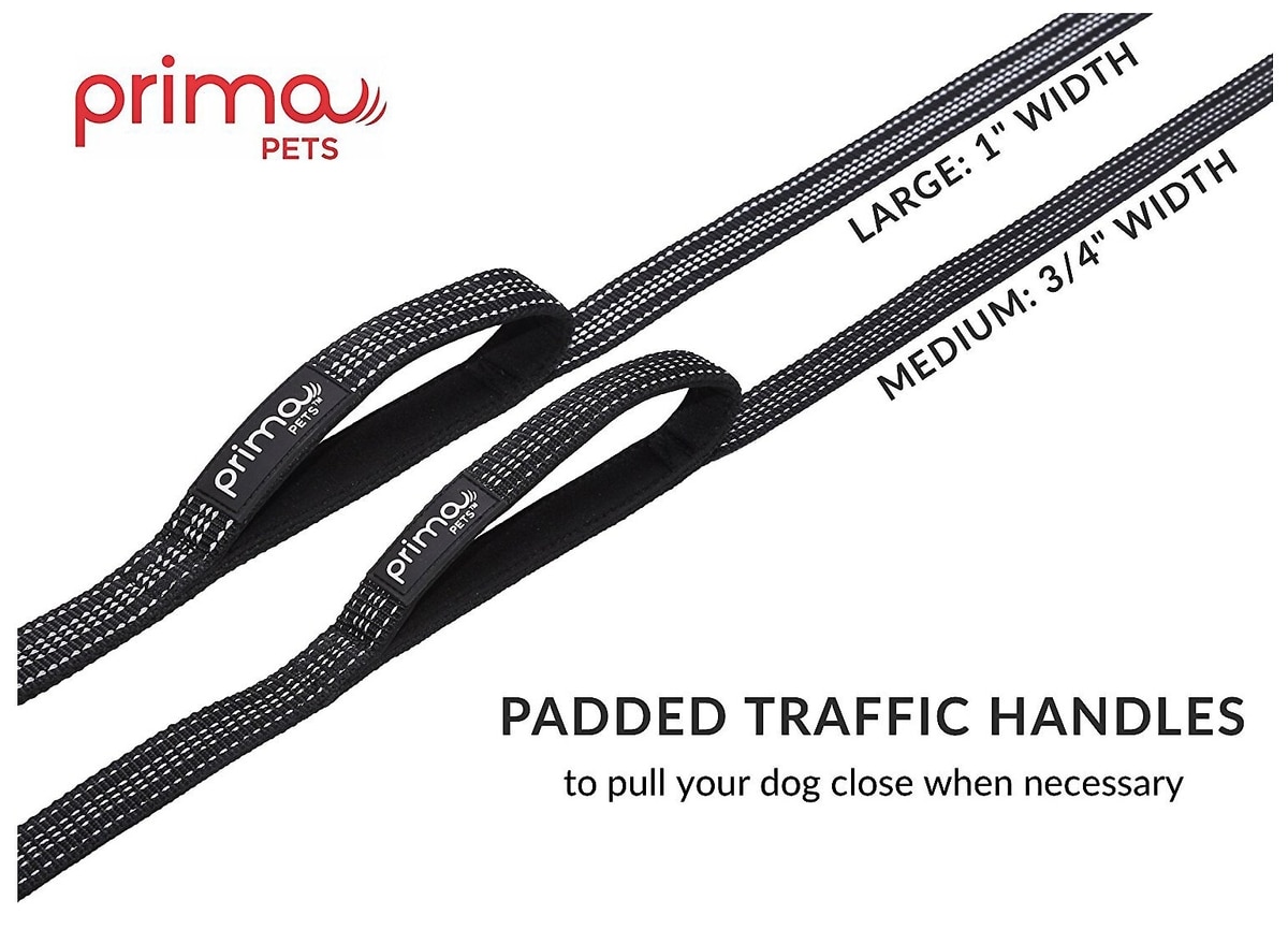 Prima Pets Dual-Handle Reflective Dog Leash, Medium, 4-ft, Black