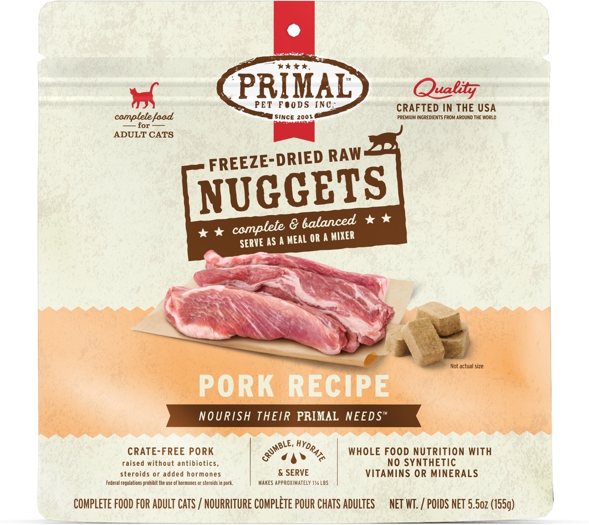 Primal Pork Formula Nuggets Grain-Free Raw Freeze-Dried Cat Food, 5.5-oz bag