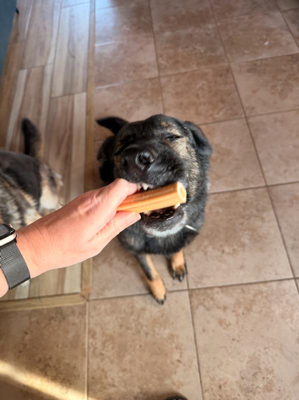 Do not feed to dogs smaller than 15 lbs or puppies. Hive Chew Sticks are intended for intermittent or supplemental feeding only. Offer one treat per day. Always monitor your pet while treats are being consumed and make sure they’re chewing their treats.