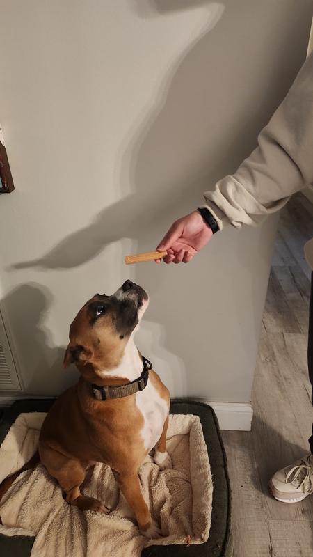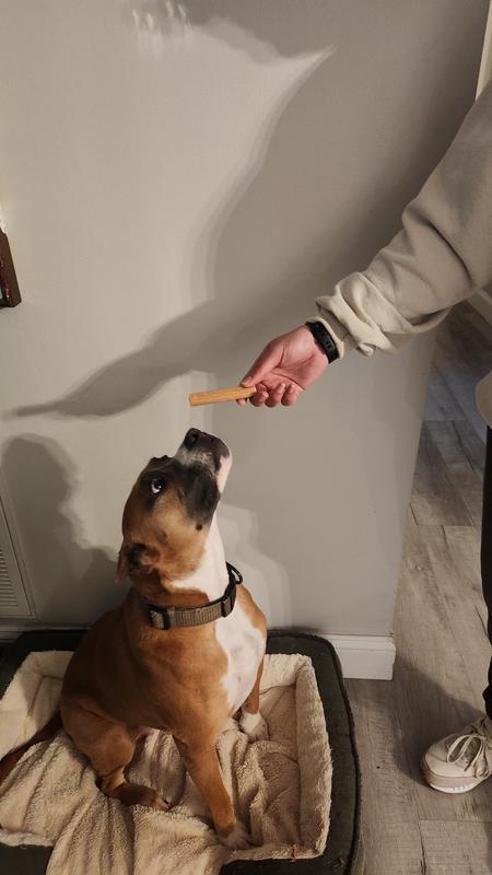 My pit mix loved these pumpkin chews! His eyes got so big the second I opened the bag — he was so excited. They’re a great snack, easy to give, and clearly super