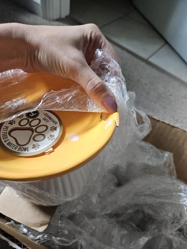 - Dishwasher and microwave-safe pet bowl is easy to clean and heat.