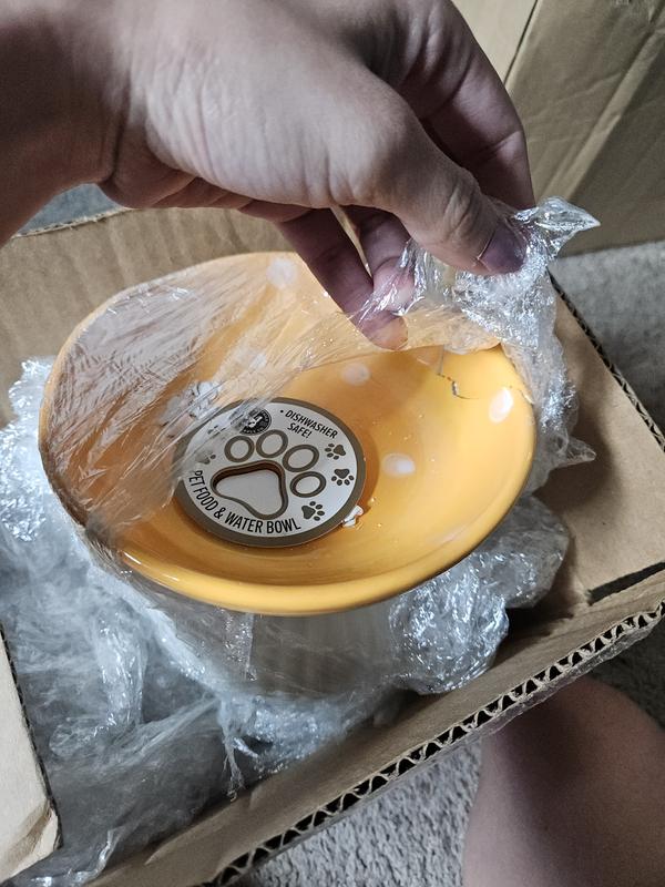 P.T. Supply Co. Mushroom Shaped Stoneware Elevated Dog & Cat Bowl, Yellow