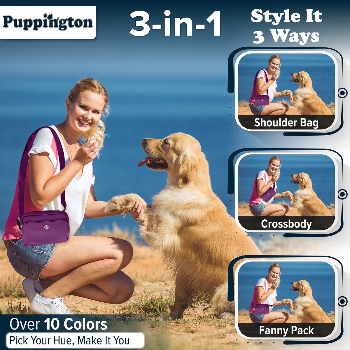 - This unisex bag is versatile and stylish, transitioning seamlessly from office to off-leash adventures; you can carry it as a crossbody, fanny pack, or shoulder bag.