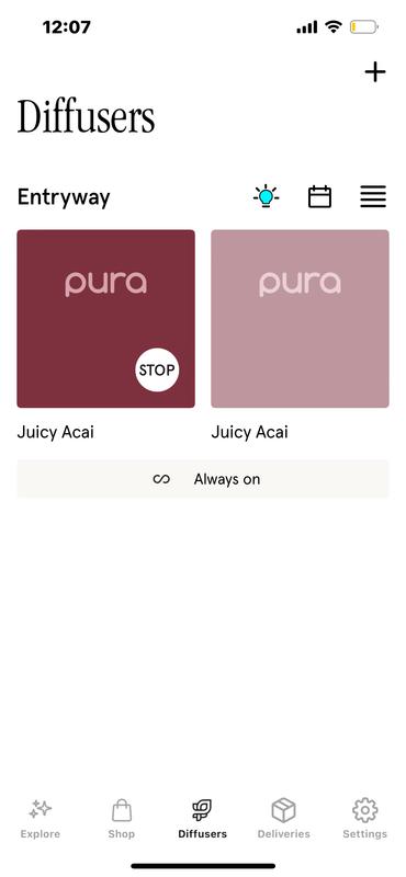 Use the Pura app to adjust fragrance intensity, easily switch between fragrances, set schedules and timers, and more. Your diffuser will efficiently fill your space with your desired scent intensity for up to 120 hours per smart fragrance vial.
