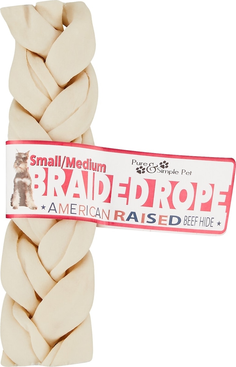 Pure & Simple Pet Rawhide Braided Rope Dog Treat, Small/Medium
