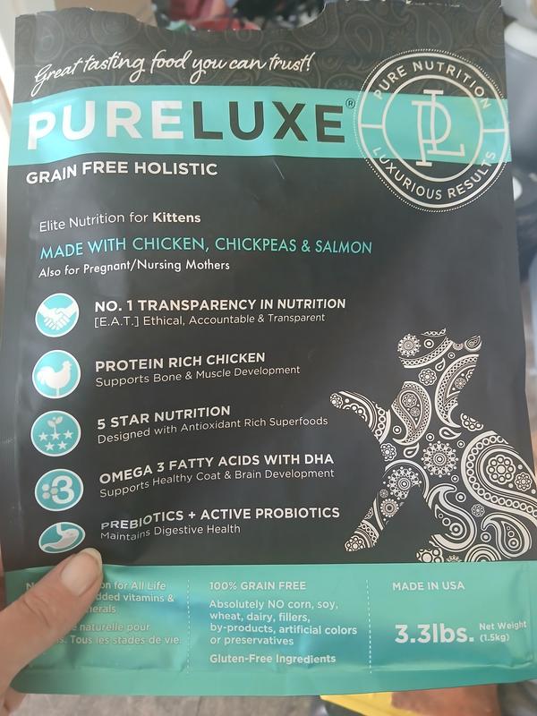 Pureluxe Elite Nutrition Chicken, Chickpeas & Salmon Grain-Free Kitten Dry Cat Food, 3.3-lb bag