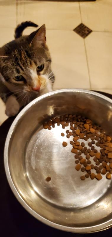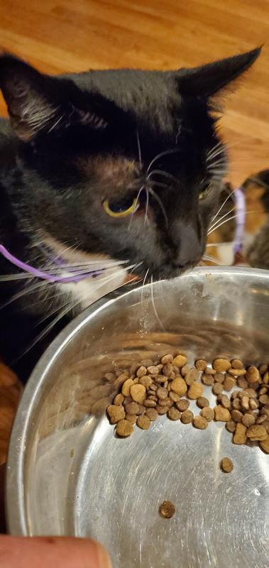 I got this food for my two young cats I put it in their free-feed tower and noticed it had a nice aroma as I filled the feeder and the small kibble size was especially nice to use. As usual James (1-year-old) and Thomas (9-mo-old), were right there checking out what I was putting in their feeder and when I finished filling it they were instantly checking it out and didn't hesitate at all to dig in. They loved it and didn't eat as much of their wet food preferring to eat the Pureluxe. Bottomline, James and Thomas are happy cats and love eating their Pureluxe.