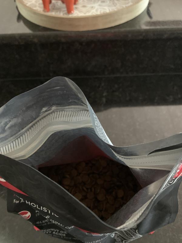 My dog loved this food. She found it highly palatable. The kibble size isn’t too big or too small, and the bag securely seals after opening to keep the food fresh