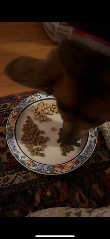 My dog does not like most kibble; she much prefers fresh fish, meat, and vegetables. However, I want to make sure she eats a balanced diet, so I try to get her to eat at least some kibble with most meals. I've tried lots of brands and flavors, and this kibble is her favorite by far. It smells better to me than other kibbles, too. The small size of the kibbles is good for a smaller dog like mine, too.