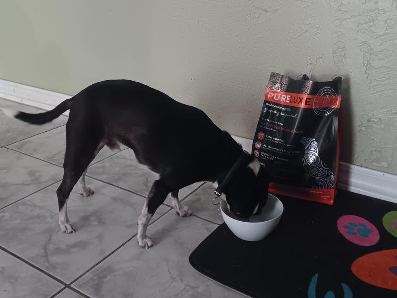 My 2 terrier dogs needed a change in their dog food. After reviewing many different dog foods I decided to try PURELUXE ELITE GRAIN-FREE SALMON & SWEET POTATO dry dog food. I chose it because of the quality of ingredients. The dogs loved the taste! And after a few weeks I noticed my dogs weren’t scratching as much as they used to. So I am happy with this new dog food, and more importantly, my dogs love it!