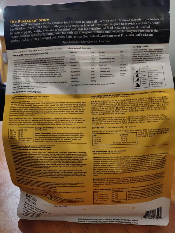 Pureluxe Elite Nutrition Indoor Salmon & Split Peas Grain-Free Dry Cat Food, 11-lb bag