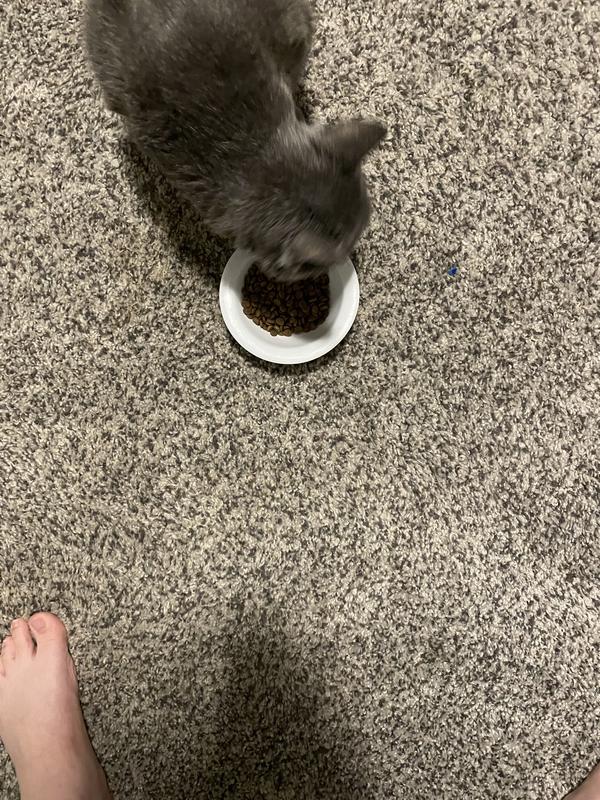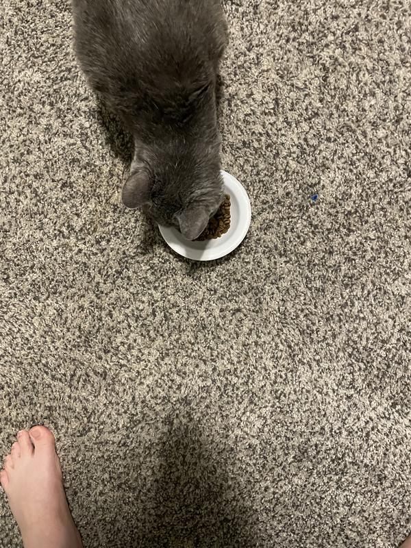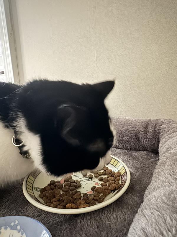 Molly, our long-haired black cat started eating from her "crunchie" bowl right away. She likes that it is small in size and Salmon is her favorite flavor. Then our other 3 cats started to also munch on it. They also eat wet food as their main food twice a day but always have bowls of Dry food available to them. They seem to like to munch on the food during the evening as the bowls are pretty much empty in the morning. I Definity would recommend to everyone with a finicky cat as the Salmon flavor is a hit.