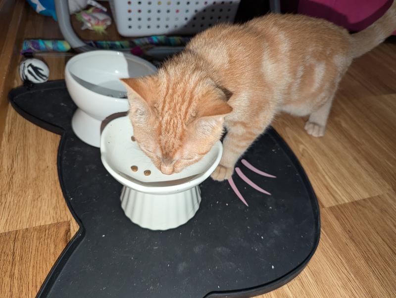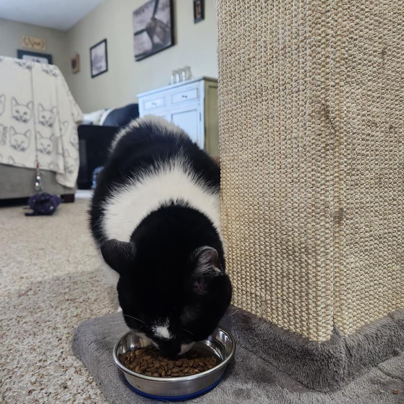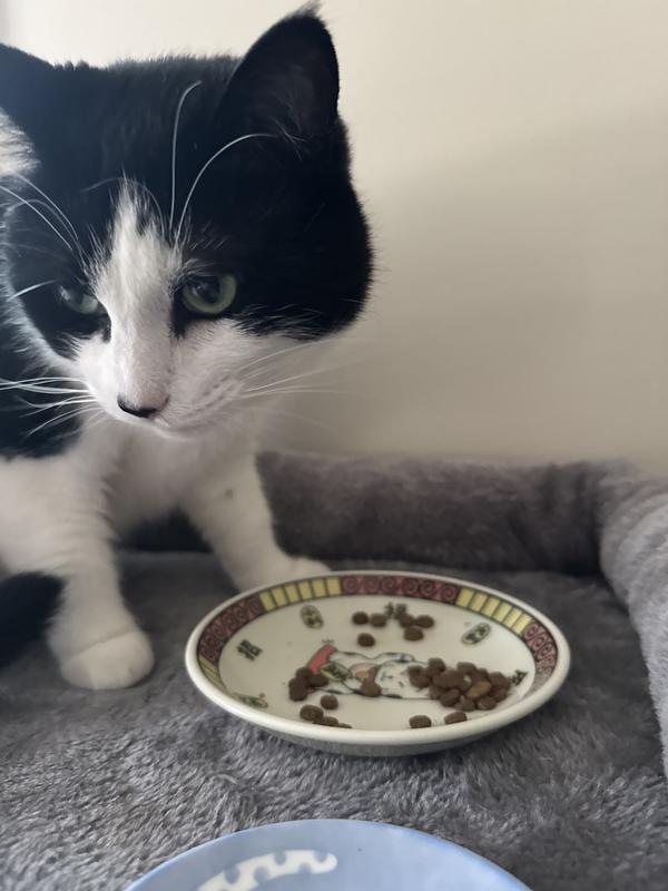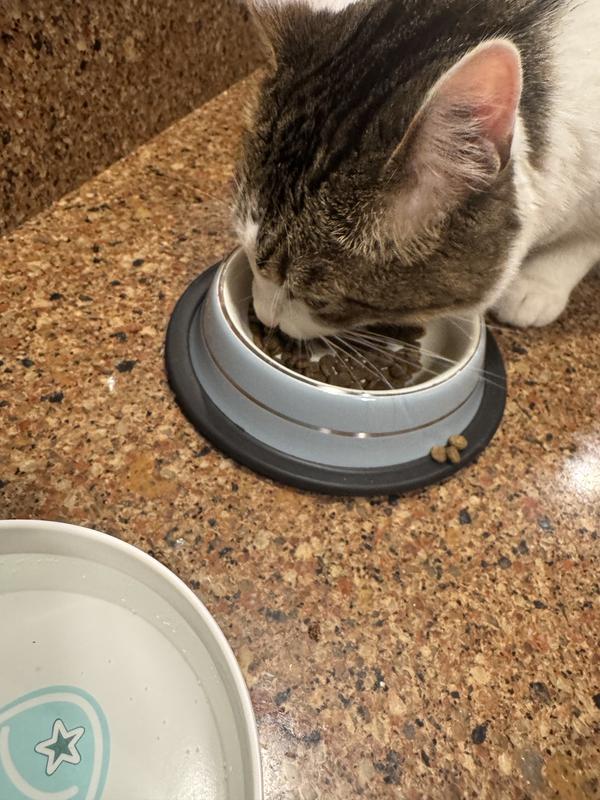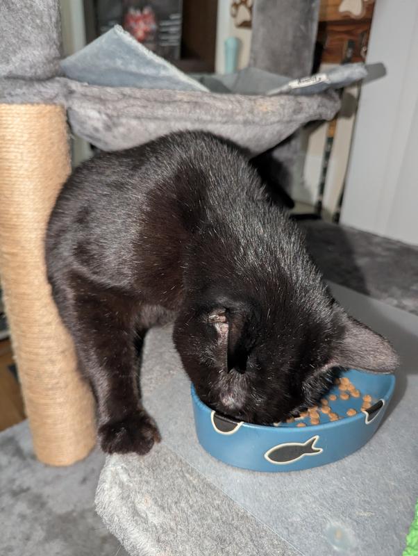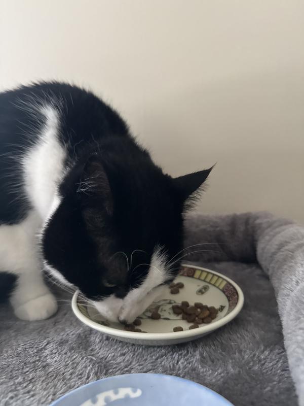 Molly, our long-haired black cat started eating from her "crunchie" bowl right away. She likes that it is small in size and Salmon is her favorite flavor. Then