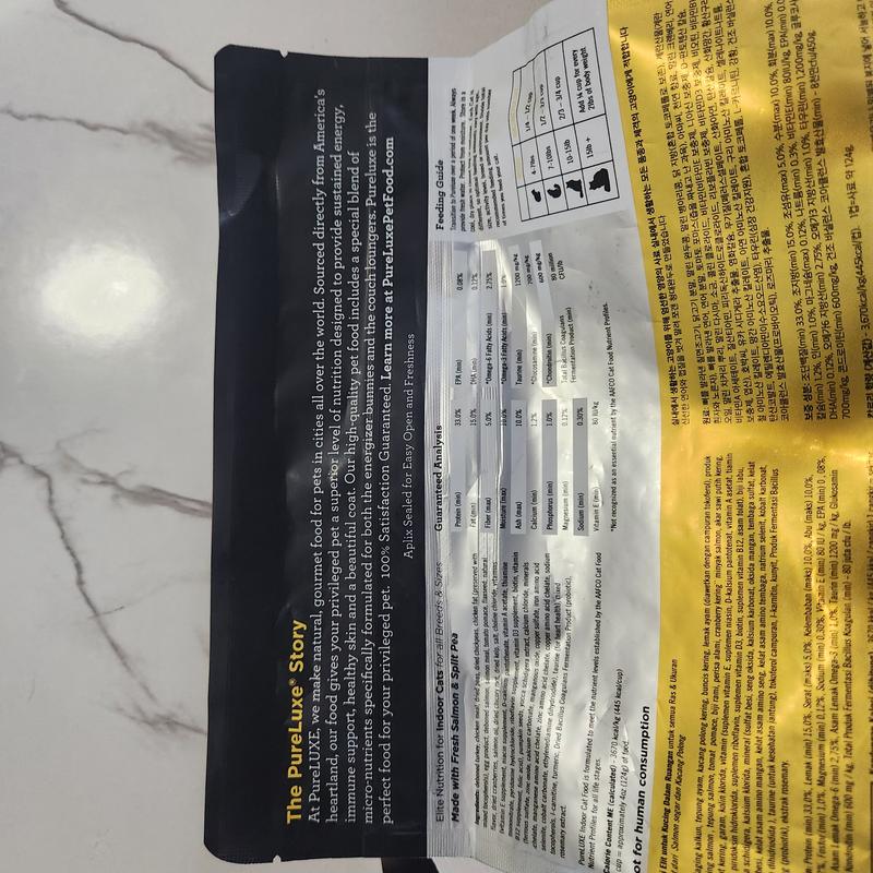 I wanted to be as "scientific" as possible to test this food with my 3 cat and the visiting stray (?) that frequents my front porch from time to time. I set out two bowls of food for each cat (yes they have their own places), one with the food they ate previously and this one. I got mixed reviews: Chilli relished the PureLuxe at first then reverted to the old food, though she continued nibbling the new; Freya wasn't keen on the change, but ate it nonetheless; Louise, the oldest, seemed to like the old and new equally. The stray cleaned the bowl each night. My cats being divas, I think they would be happy to eat the PureLuxe if they had no other choice, but simply chose to eat what was familiar. Being human, I thought the food had good size and rich color, though I didn't try it myself :) That said, the food appeared to offer all the nutritional benefits that cats need.
