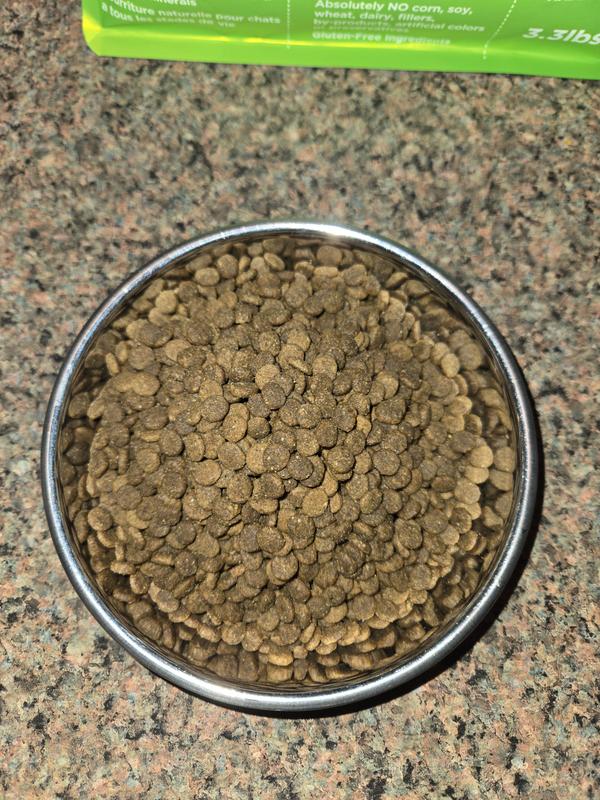 I have purchased higher quality cat food for my cats for several years now. I look for high quality proteins, low carbohydrates and no corn, corn meal or other unnecessary grains. I like that this one has glucosamine also. With better quality, cats eat less and poop less and litter box smells better. This one is very well liked by my multiple cats. The kernels are small and easy to swallow. Even the picky eater shown dove right in. I will be buying this again.