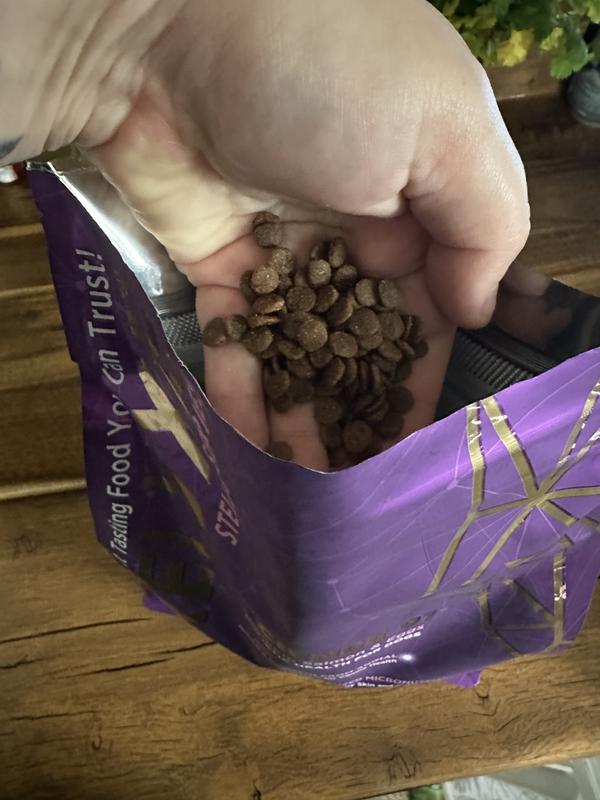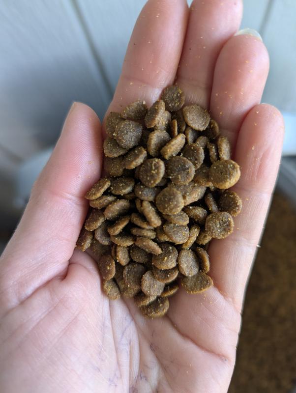 This seems like a high quality pet food, but the pieces of food are just so small. We used it as an add-on and sprinkled it onto their food. They seemed to enjoy it, no stomach issues or anything like that - but the pieces were flying across the room as my larger dog (56 pounds) was eating them out of his slow feeder bowl. It really seems like this food should be for a toy breed size dog because each piece is probably 1/3 the size of our normal food. I don’t have any interest in chasing down flying kibbles, and without a slow feeder bowl this kibble would be gobbled down entirely too fast.
