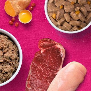 Beyond wet foods use thoughtfully sourced ingredients like farm-raised beef and cage-free chicken.
