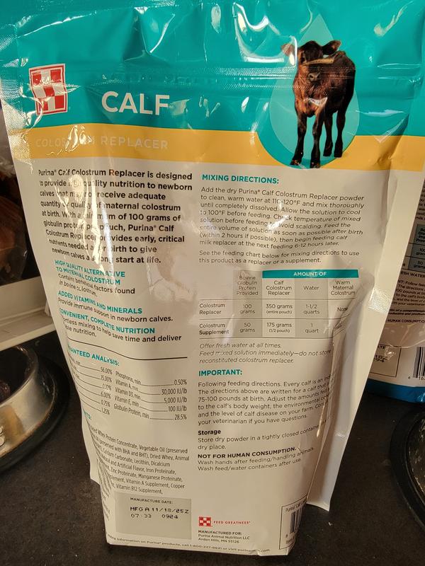 Purina Calf Colostrum Replacer Powder Cattle Feed, 12.3-oz bag