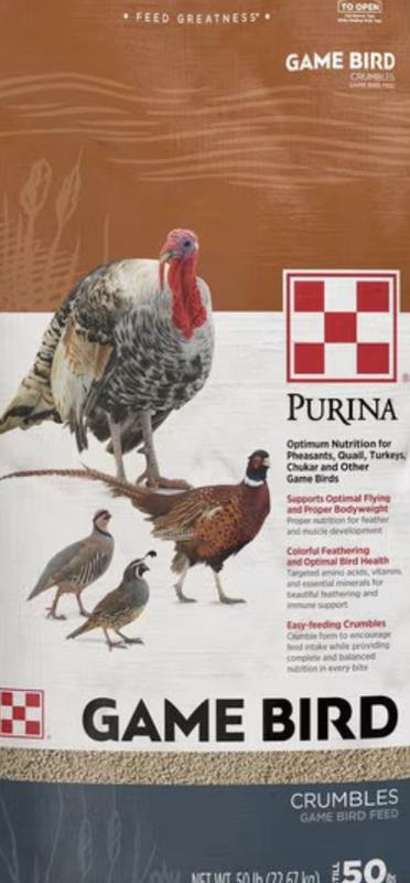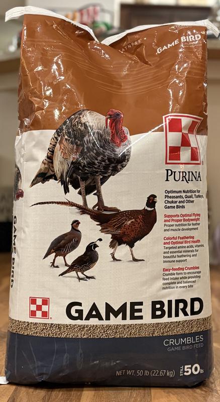 - Purina Animal Nutrition Purina Game Bird Maintenance Crumble Poultry Feed, 50-lb bag$28.99 Chewy Price$29.49 List Price$27.54 Autoship Price