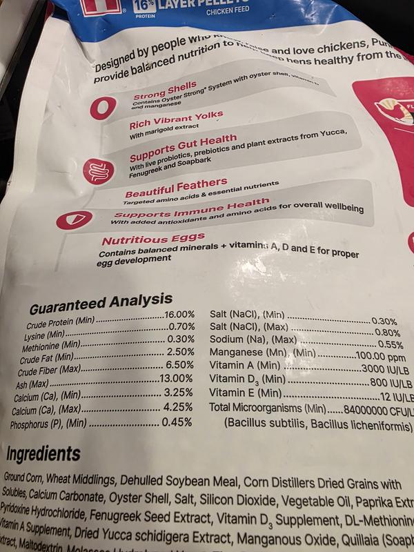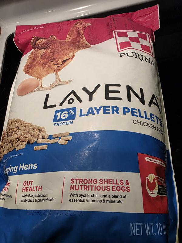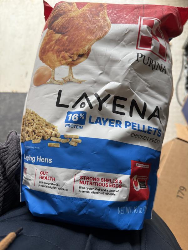 - Purina Animal Nutrition Purina Layena 16% Protein Crumbles Chicken Feed, 50-lb bag$23.99 Chewy Price$24.99 List Price$22.79 Autoship Price