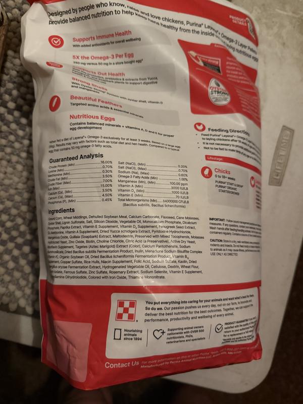 - Purina Animal Nutrition Purina Layena 16% Protein Pellets Chicken Feed, 10-lb bag$9.99 Chewy Price$10.49 List Price$9.49 Autoship Price