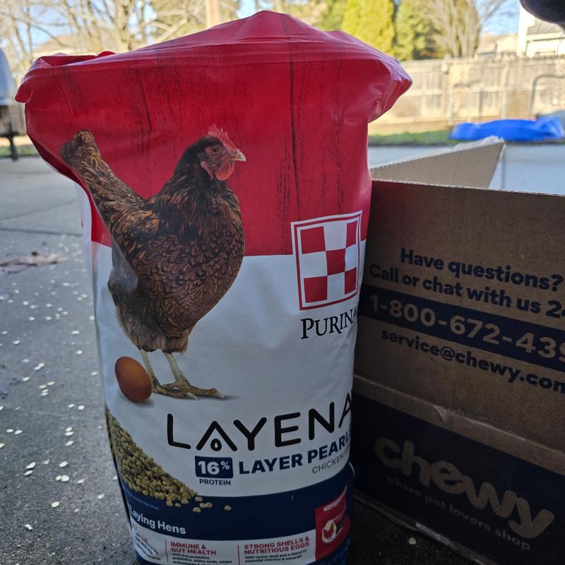 - Purina Animal Nutrition Purina Layena 16% Protein Crumbles Chicken Feed, 50-lb bag$23.99 Chewy Price$24.99 List Price$22.79 Autoship Price
