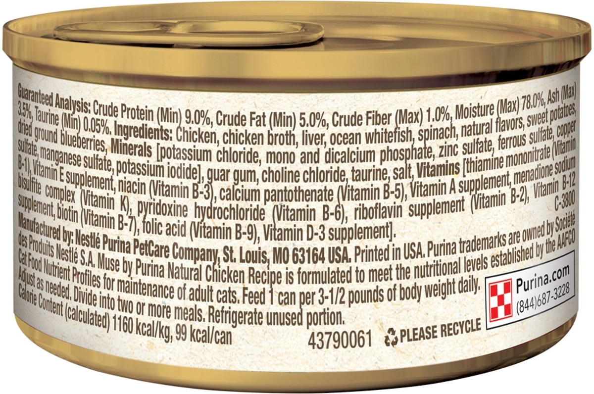 Purina Muse Natural Chicken Recipe Grain-Free Pate Canned Cat Food, 3-oz, case of 24