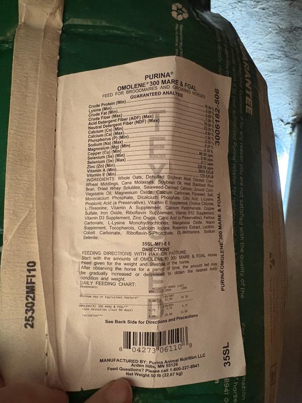 Purina Omolene 300 Mare & Foal Horse Feed, 50-lb bag