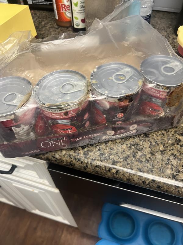 - DealPurina ONE SmartBlend True Instinct Tender Cuts in Gravy with Real Beef & Wild-Caught Salmon Canned Dog Food, 13-oz, case of 12$28.56 Chewy Price$29.76 List Price$27.13 Autoship PricePromo, Spend $100, Get $30 eGift Card with code NEWYEAR +1 deal