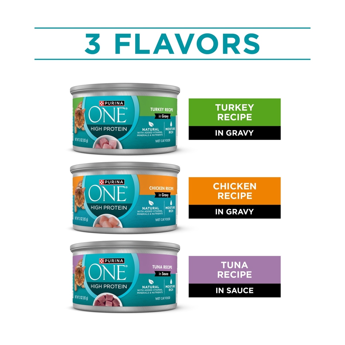 - Purina ONE Natural Chicken, Tuna, Salmon & Trout Variety Pack High Protein Wet Cat Food, 3-oz, case of 24$32.67 Chewy Price$34.99 List Price$31.04 Autoship PricePromo, New Customers Only: Spend $49+, Get $20 eGift Card +1 deal