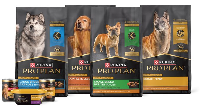 Pro Plan has created a variety of advanced formulas for dogs age 7+. Choose from Adult 7+ Complete Essentials with glucosamine and EPA, brain-supporting Bright Mind, Sensitive Skin & Stomach, and Sport formulas for older dogs.