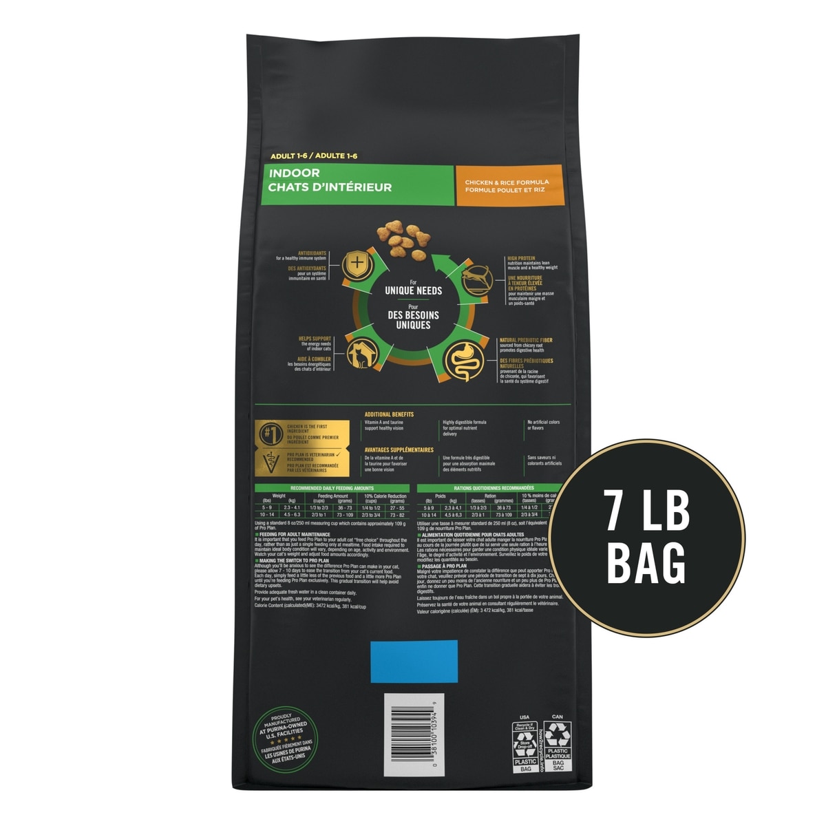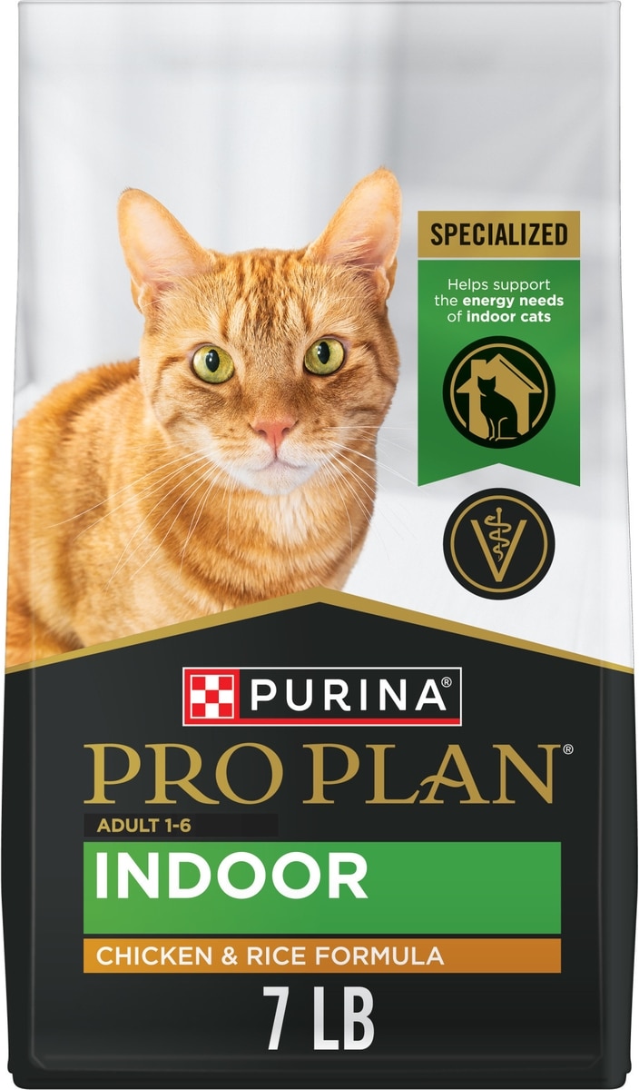 Purina Pro Plan Adult Indoor Chicken & Rice Formula High Protein Dry Cat Food, 7-lb bag