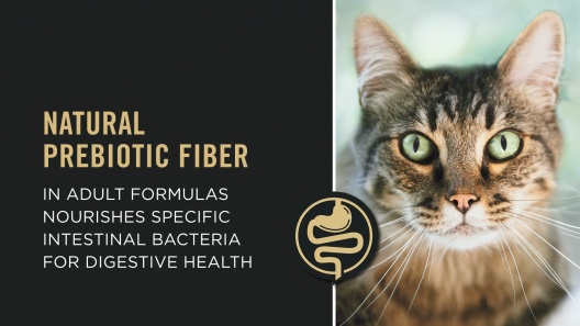Natural prebiotic fiber in the dry formulas nourishes specific intestinal bacteria for digestive health.
