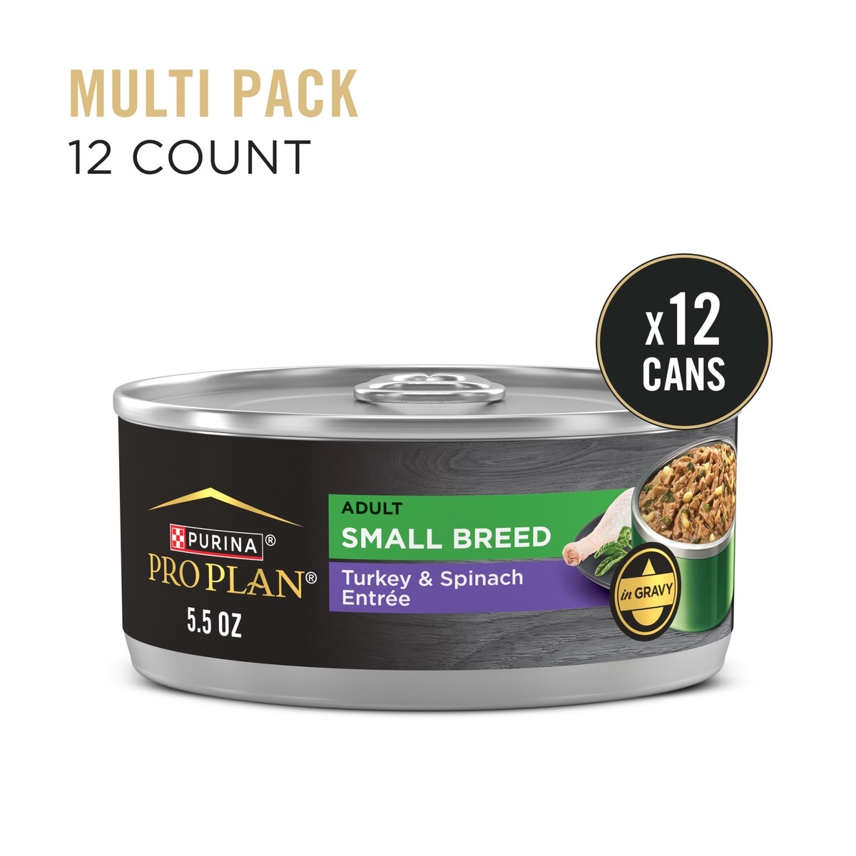 Purina Pro Plan Adult Small Breed High-Protein Turkey & Spinach Entree in Gravy Shredded Wet Dog Food, 5.5-oz can, case of 24