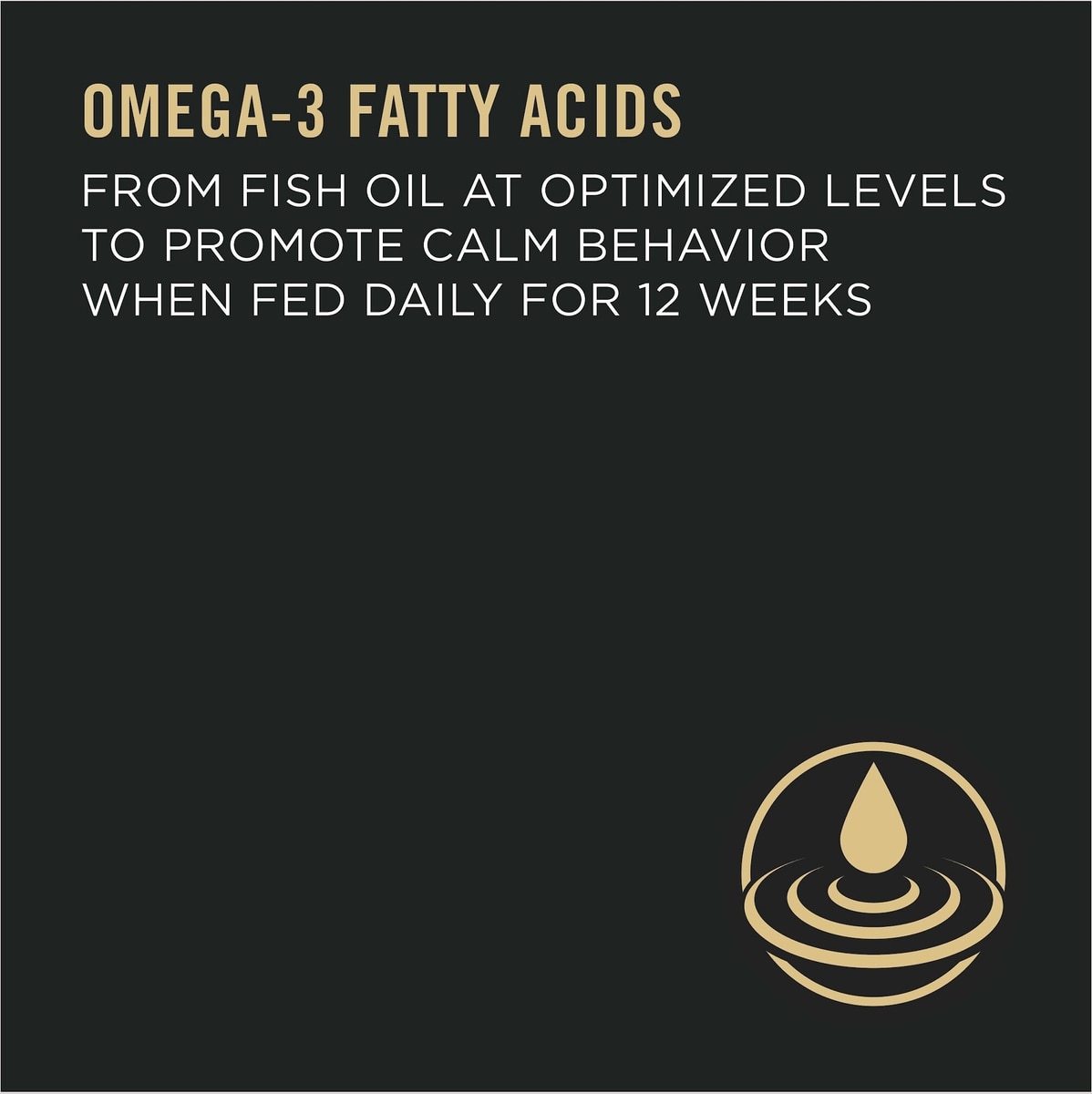 Purina Pro Plan Adult Dog Food for small breeds under 20 pounds at maturity, featuring Omega-3 fatty acids at optimized levels helps promote calm dog behavior when fed daily for 12 weeks.