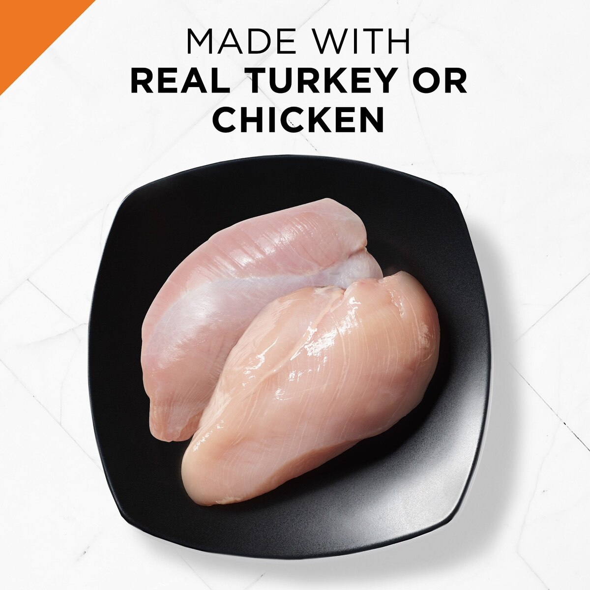 - Each recipe in the variety pack is crafted with either real turkey or chicken for the high-quality protein your cat needs to fuel her daily activities.