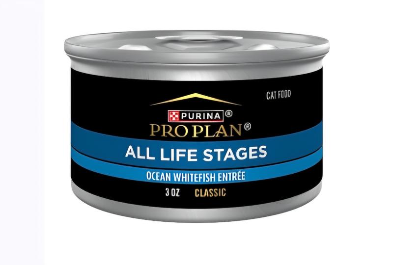 The Purina Pro Plan Ocean Whitefish Entree is a wet cat food formula that aims to provide complete and balanced nutrition, and it comes in various specialized formulations