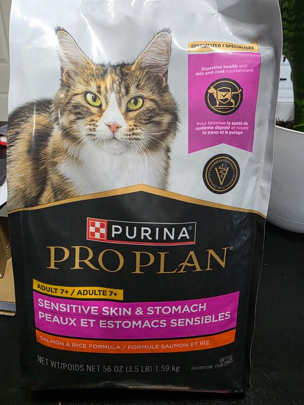 Purina Pro Plan Senior Sensitive Skin & Stomach Salmon & Rice Formula Dry Cat Food, 3.5-lb bag