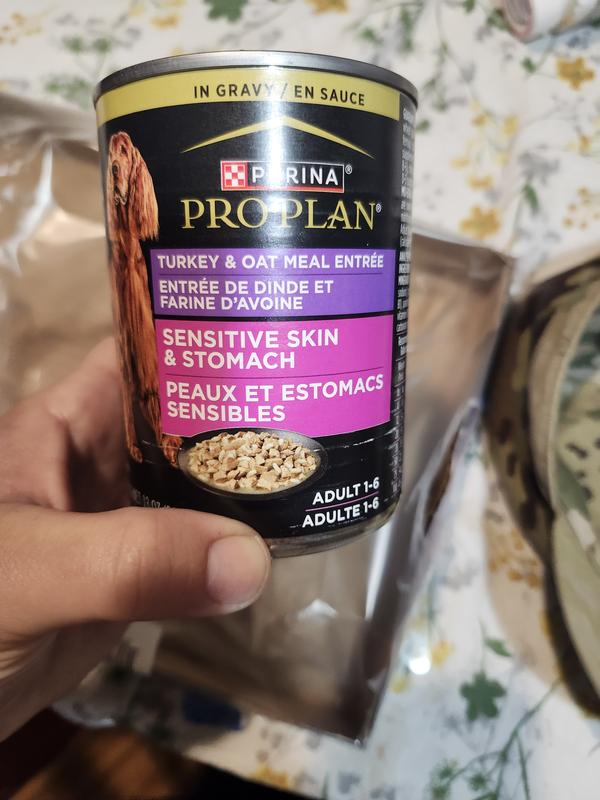 - Purina Pro Plan Adult Sensitive Skin & Stomach Lamb & Oat Meal Entree Wet Dog Food, 13-oz can, case of 12$41.52 Chewy Price$45.48 List Price$39.44 Autoship PricePromo, New Customers Only: Spend $49+, Get $20 eGift Card +1 deal