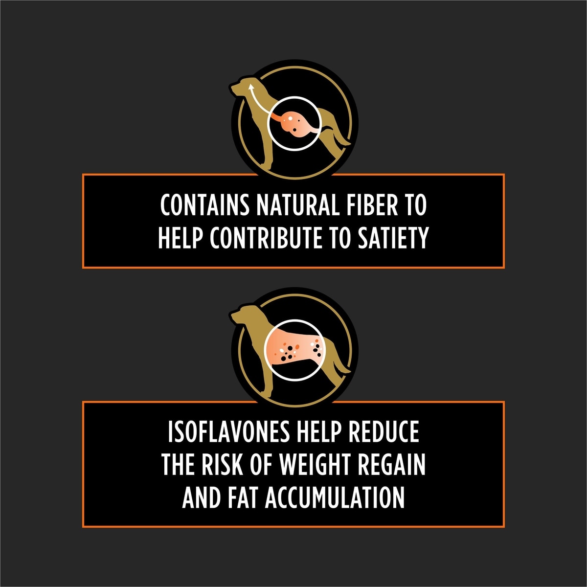 Purina Pro Plan’s OM Overweight Management recipes are formulated with precise nutrition to help your dog lose weight while maintaining muscle. Each formula is low in fat and calories, has a high protein-to-calorie ratio, and contains fiber to help your dog feel satisfied. The dry formulas also contain isoflavones to help reduce the risk of weight regain and fat accumulation.