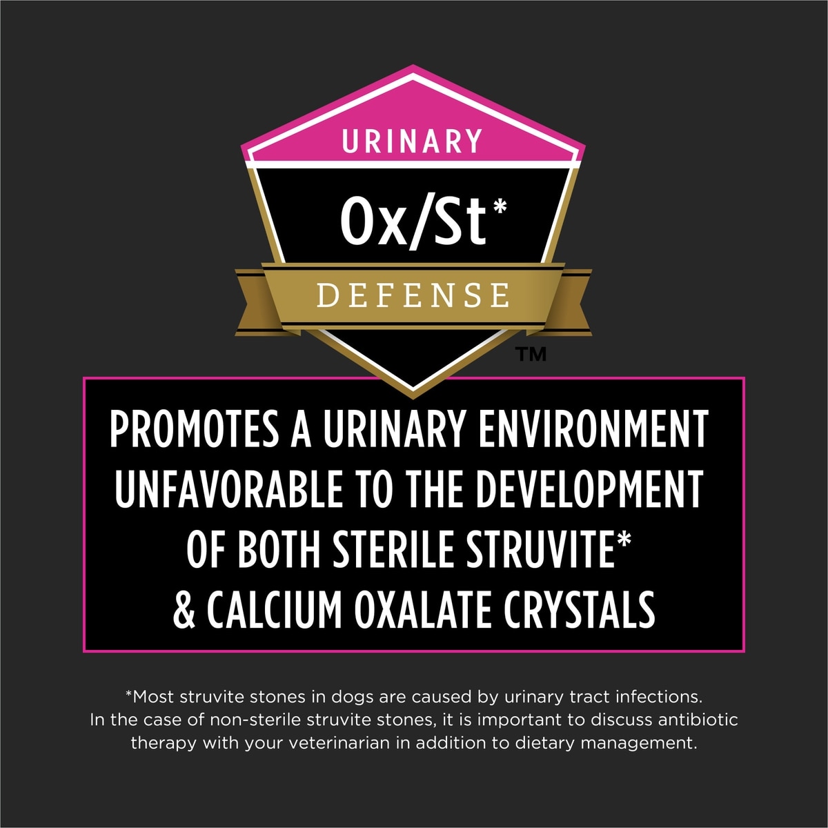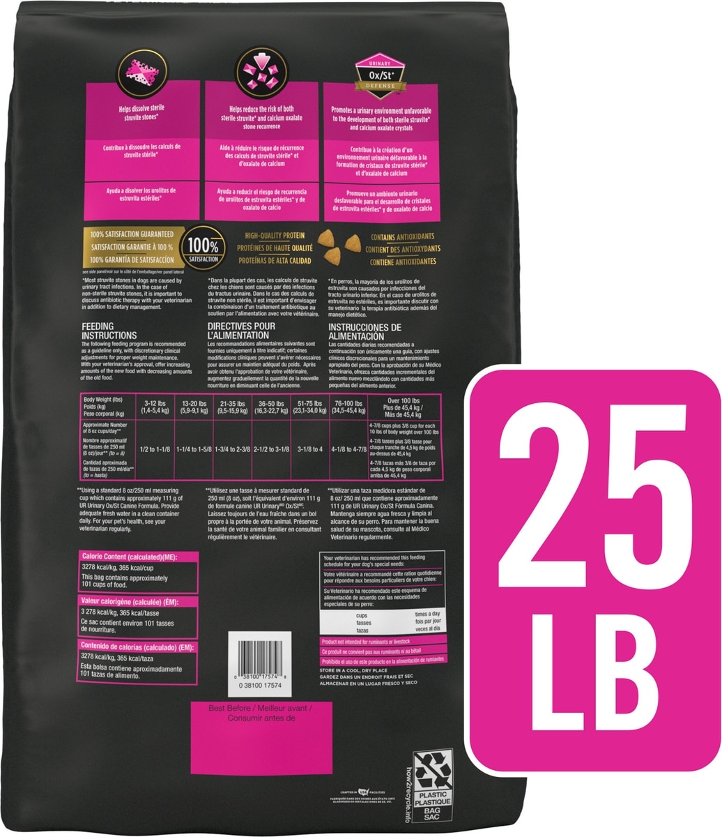 Purina Pro Plan Veterinary Diets UR Urinary Ox/St canine formulas are made with high-quality ingredients, and formulated to help reduce the risk of urinary stone formation in dogs. Each formula also contains antioxidants.