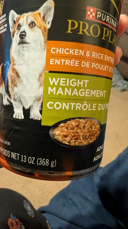 - Purina Pro Plan Weight Control Adult High Protein Beef & Rice Entree Canned Dog Food, 13-oz can, case of 12$37.44 Chewy Price$39.48 List Price$35.57 Autoship PricePromo, New Customers Only: Spend $49+, Get $20 eGift Card +1 deal