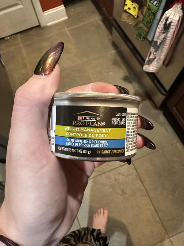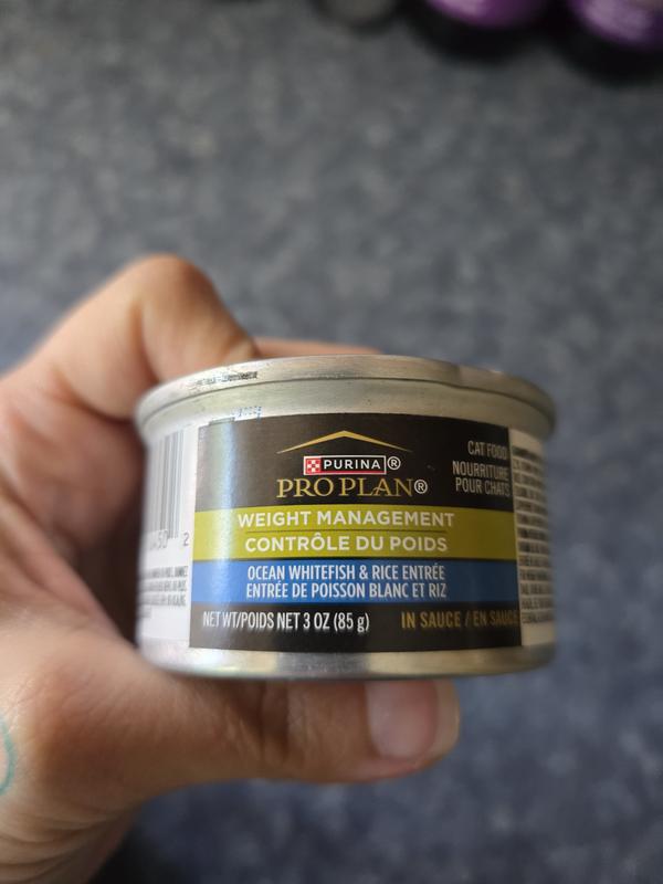 - Purina Pro Plan Weight Management Tuna & Rice Entree in Sauce Wet Cat Food, 3-oz can, case of 24$47.04 Chewy Price$50.16 List Price$44.69 Autoship Price
