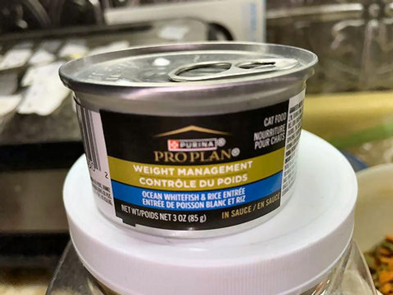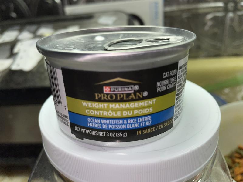 - Purina Pro Plan Weight Management Salmon & Rice Entree in Sauce Wet Cat Food, 3-oz can, case of 24$47.04 Chewy Price$50.16 List Price$44.69 Autoship Price